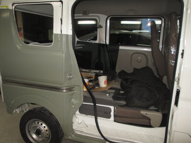 車名:スズキ エブリー 平成27年式 右スライドドア・右リアフェンダーの交換作業 尼崎市のお客様