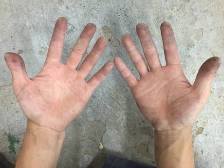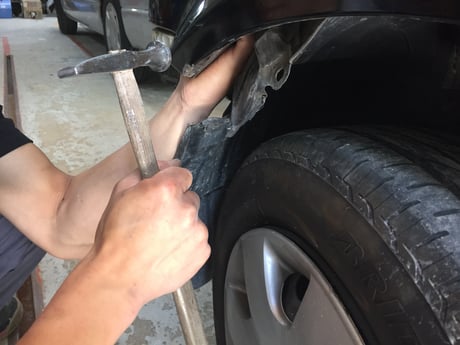 鈑金経験5年目の鈑金主任、小牧くんの手です。