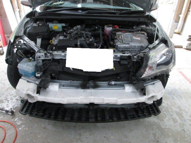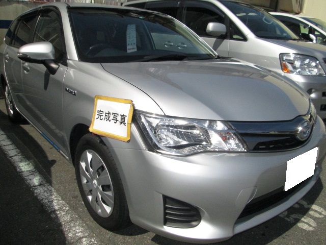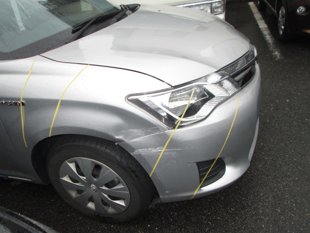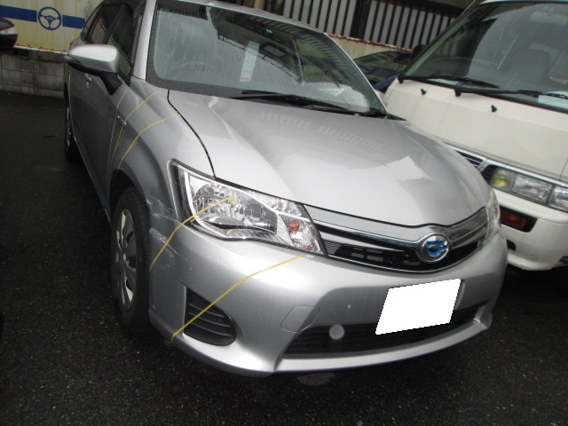 トヨタ カローラフィールダー(カラー№1F7)平成26年式 右フロントフェンダー修理 フロントバンパー交換 豊中市のお客様