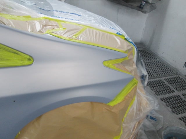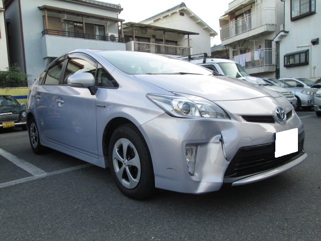 トヨタ プリウス (カラー№9AE) 平成25年式 フロントバンパー、右ヘッドランプ交換 右フロントフェンダー修理 尼崎市のお客様