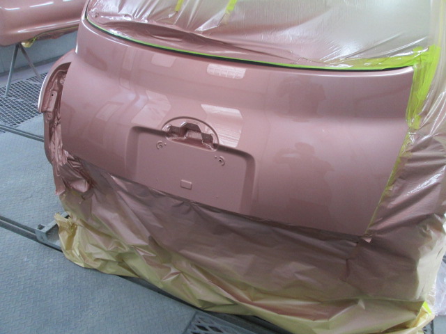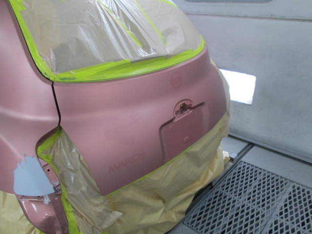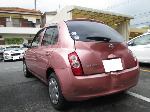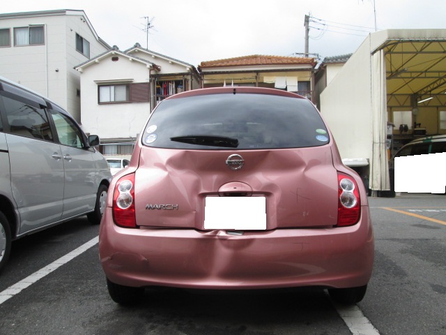 ニッサン マーチ (カラー№NAA) 平成22年式 バックドア、リアバンパー、左右リアフェンダー修理 福岡県のお客様