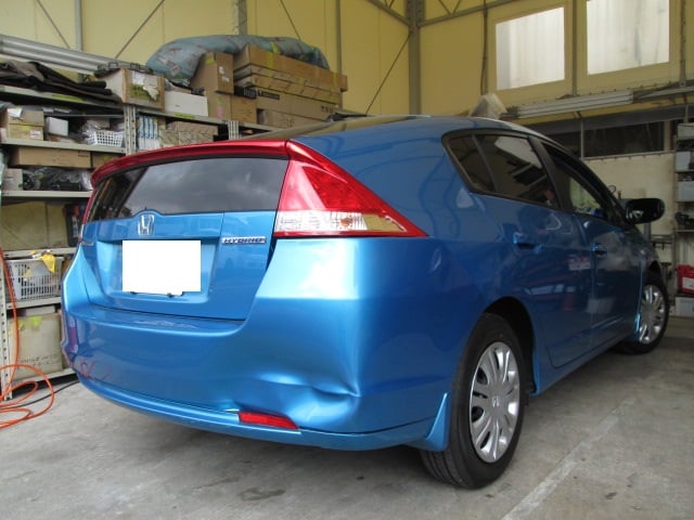 ホンダ インサイト (カラー№BG53M) リアパネル板金修理・リアバンパー交換 尼崎市のお客様
