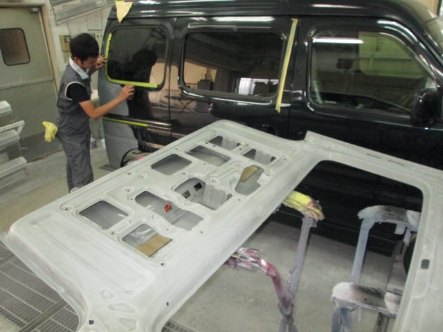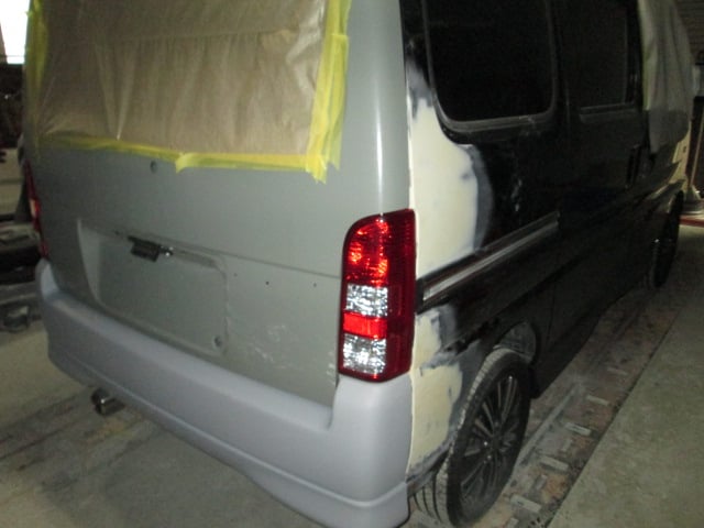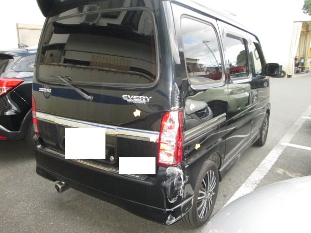 スズキ エブリィ (カラー№ZJ3) テールスカートパネル鈑金修理・クォーターパネル鈑金修理・リアバンパー交換・キッキングプレート交換・バックドアパネル交換  尼崎市のお客様
