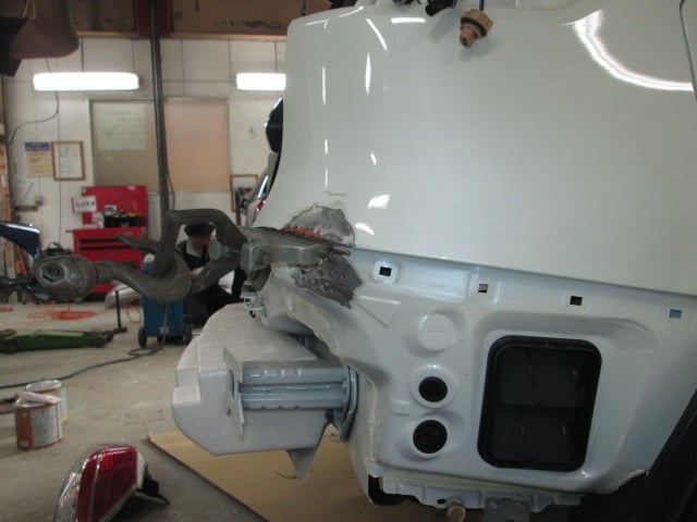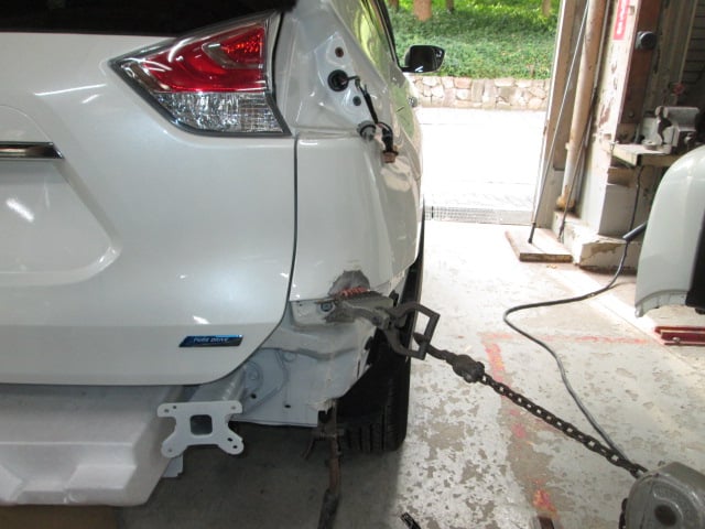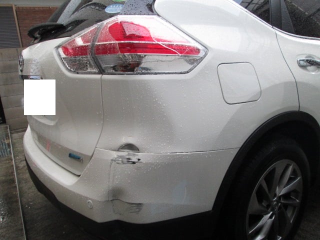 ニッサン エクストレイル (カラー№QAB) バックドア鈑金修理・アッパパネル鈑金修理・リアフェンダー鈑金修理・バンパーフェーシア交換・コンビネーションランプ交換  尼崎市のお客様