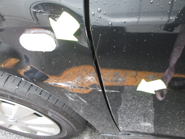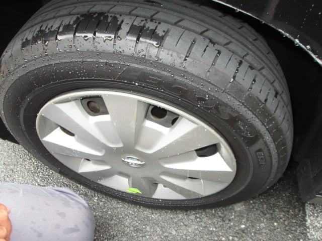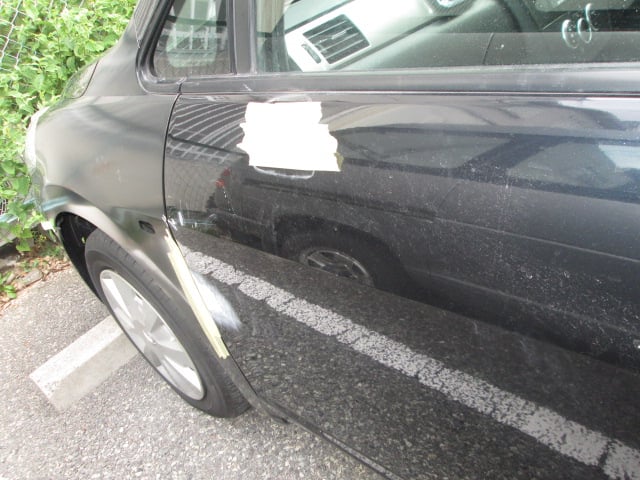 ニッサン ティーダ (カラー№B20) フロントドア鈑金修理・フロンフェンダー交換・ディスクホイールキャップ交換  芦屋市のお客様