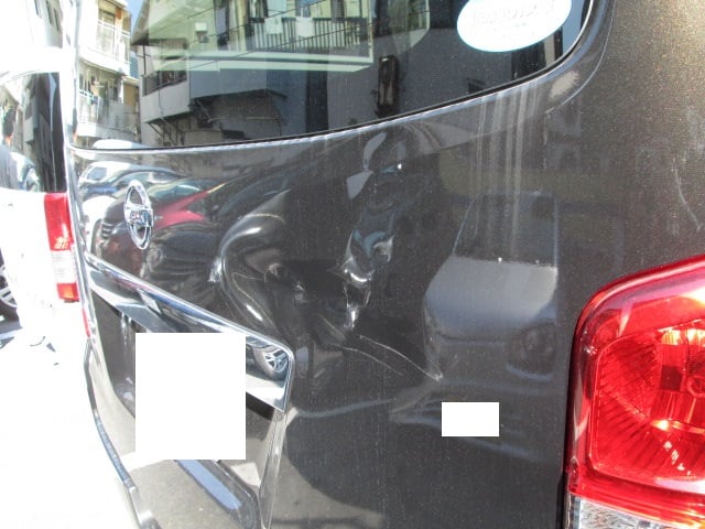 ニッサン キャラバン (カラー№K51) バックドア鈑金修理・リアアウタサイドパネル鈑金修理・左スライドドアぼかし作業  尼崎市のお客様