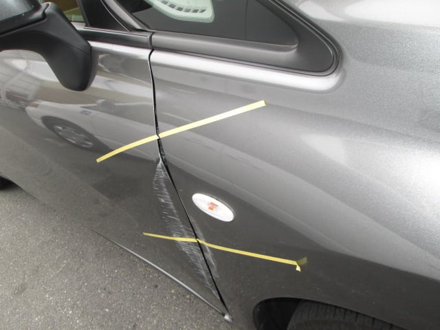 ニッサン ノート (カラー№KAD) フロントドア鈑金修理・フロントピラー鈑金修理  伊丹市のお客様
