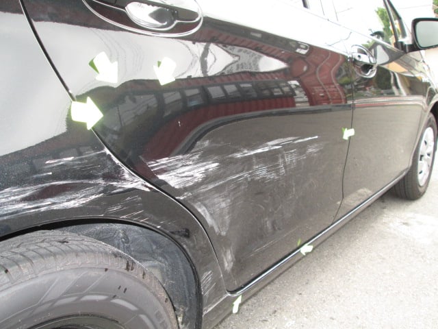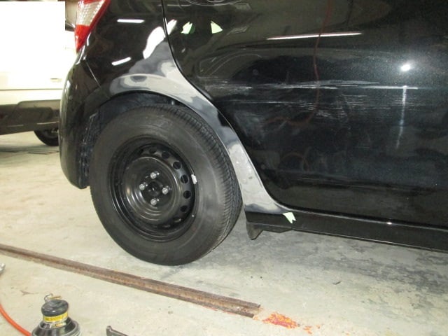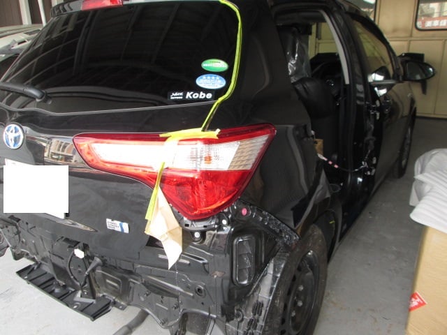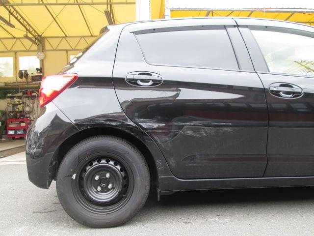 トヨタ ヴィッツ (カラー№209) クォーターパネル鈑金修理・リアドアパネル交換・リアタイヤ交換・ディスクホイール交換  尼崎市のお客様