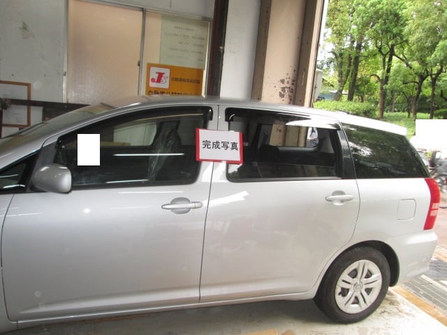 トヨタ ウィッシュ (カラー№1E7) クォーターアウタパネル鈑金修理・リアドアパネル交換・フロントドアパネルぼかし作業  尼崎市のお客様