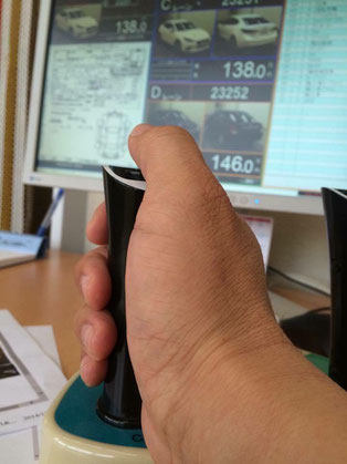 小さなキズ、ヘコミ、綺麗に塗装されて一見しただけではわからない修復まで事細かにチェックし検査表に記入されます。